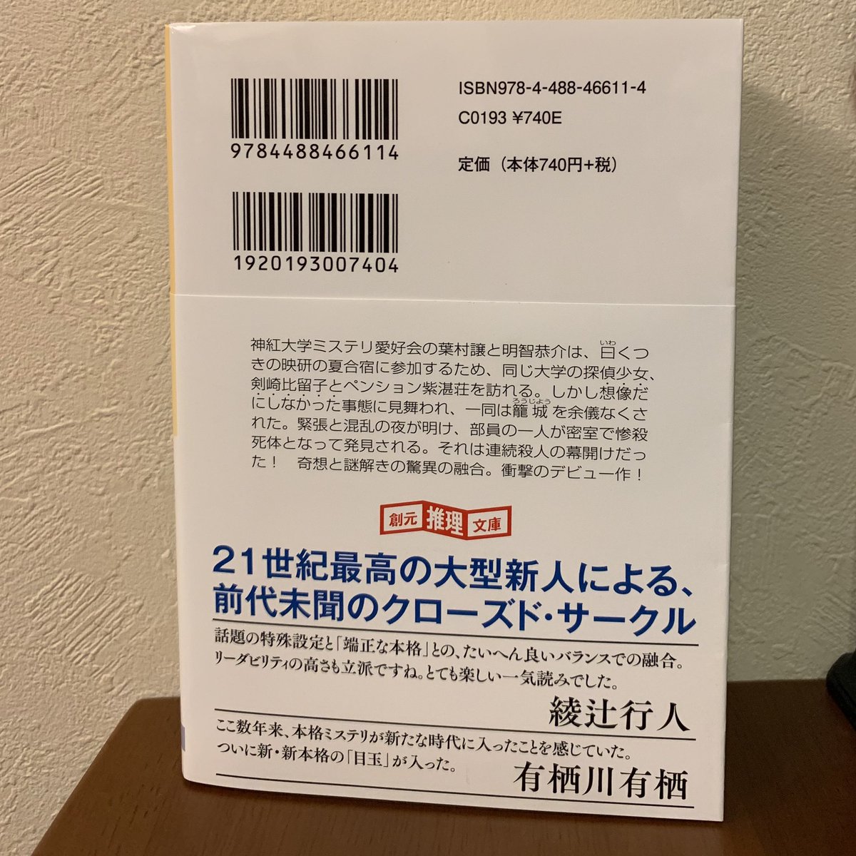 綾辻行人 On Twitter 帯の裏には有栖さんと綾辻のコメントが 単行本