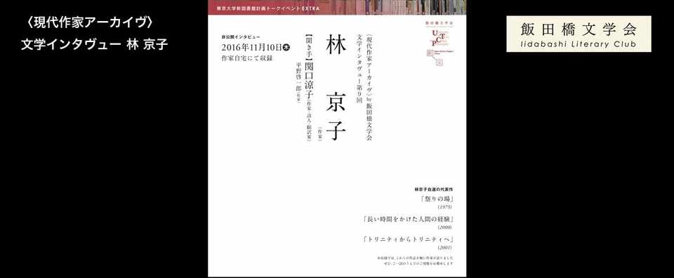 飯田橋文学会 現代作家アーカイヴ 文学インタヴュー 第9回 林京子
