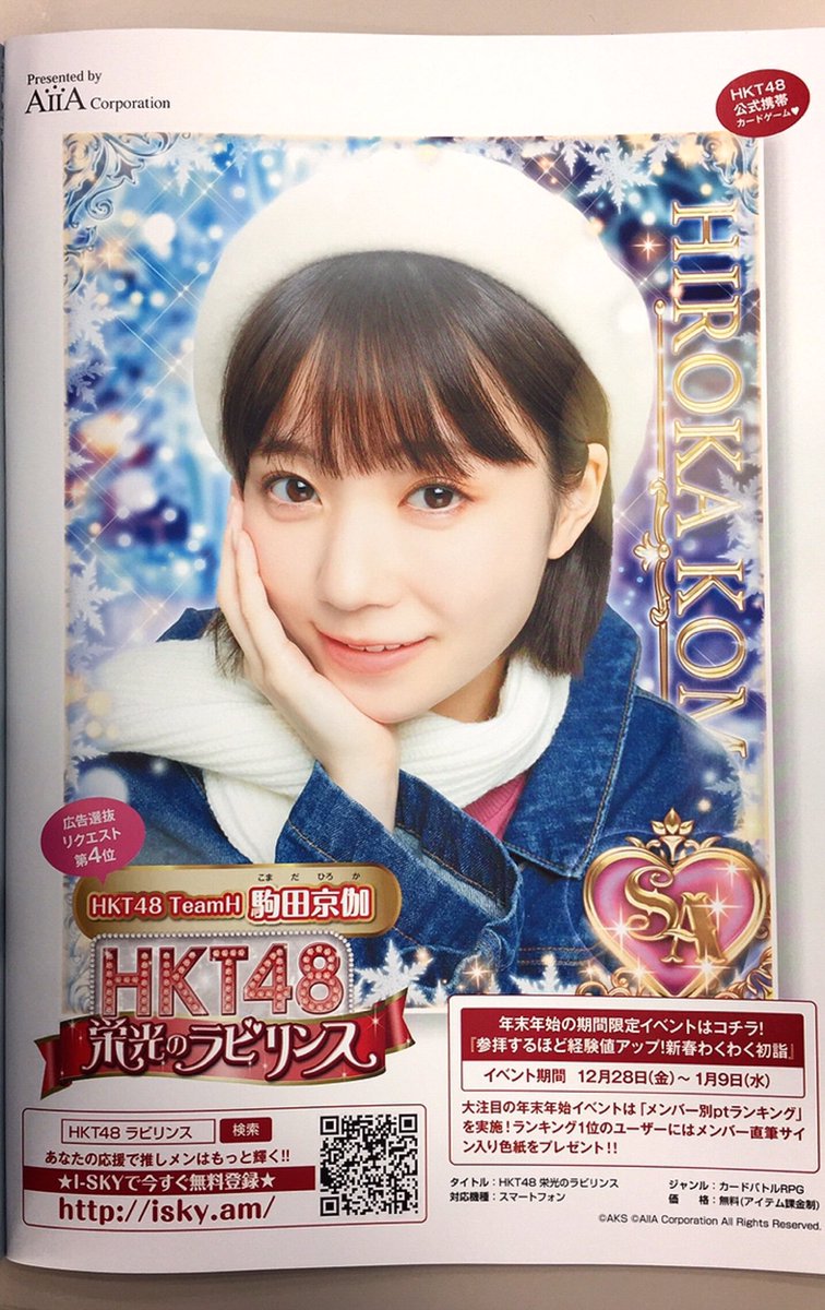 Hkt48 栄光のラビリンス 広報 On Twitter 12 29発売の Bubka 2019年2月号 にて 当ゲームの広告が掲載されています 今回の広告内容は 駒田京伽 さんのソロ広告となります ぜひチェックしてくださいね 栄光のラビリンス