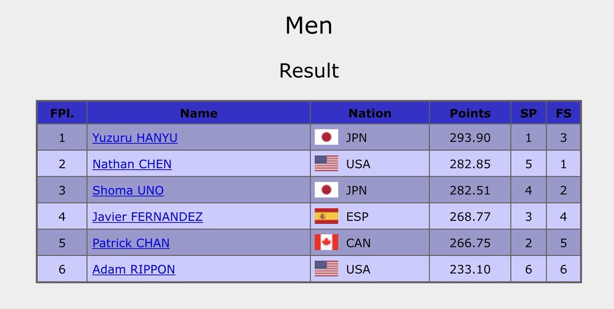 グランプリファイナル2016 男子結果 Mieの気ままなブログ